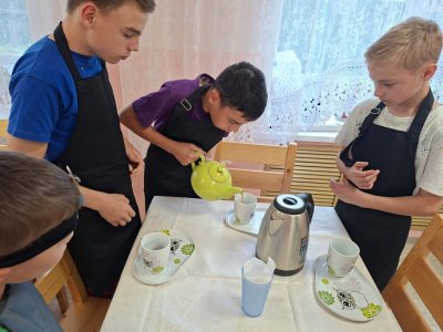 Ребята учатся правильно сервировать стол, заваривать чай и делать вкусные бутерброды! Все эти знания им пригодятся в жизни.