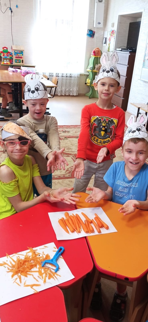 Увлекательное занятие с детьми ! Зайчики чистят морковку!