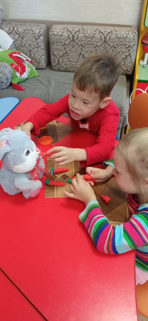 "Кушай заинька морковку!" Занятие с дошкольниками по лепке.