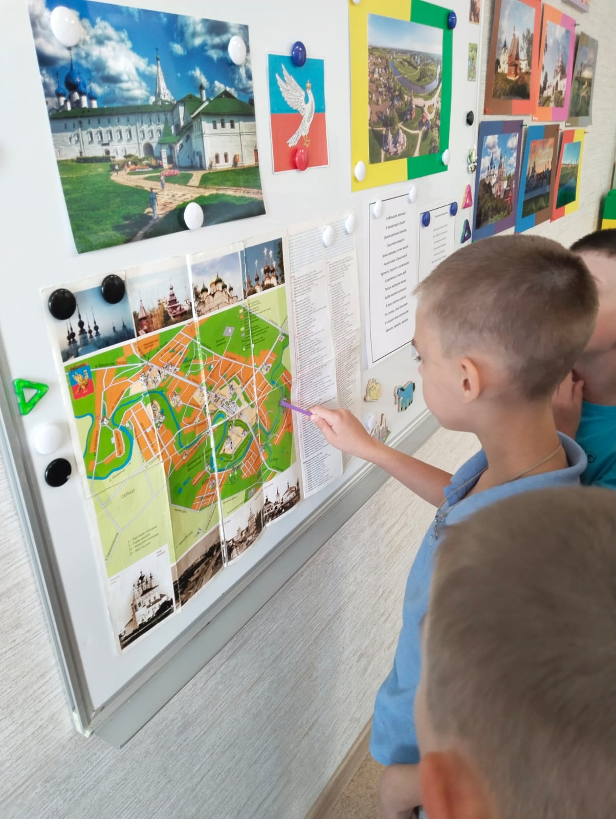 Эта тематическая неделя:" Я в городе",началась для ребят с коллективного просмотра анимационного мультфильма о тысячелетней истории г. Суздаля, а так же с изучения карты города, посещение фотовыставки с видами православных храмов, монастырей Суздаля.